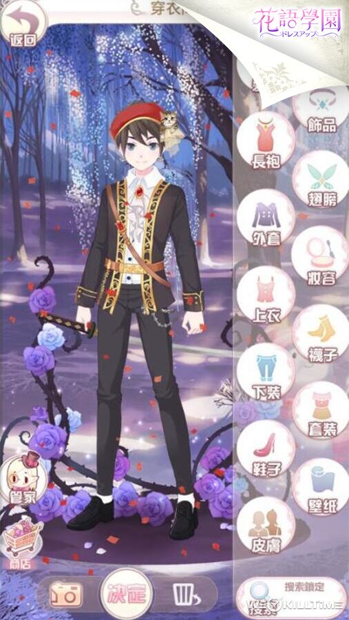 《花語學園》首創Live2D男女雙主角,打破常規的專屬於女性的換裝,帶來了男性換裝的系統,實現了雙性別的主角換裝互動,無論男裝女裝,選擇一樣多元豐富!玩家只要通關1-2關卡後便可以開啟【穿衣間】功能,一共有13種主外觀、11種配飾供你自由搭配,玩家可替主角們穿搭出專屬於你的個人特色風格,隨著劇情的進展與面臨挑戰的關卡,對於服裝上也都有不同的要求,需要玩家在【穿衣間】中親手製作培育出所需服裝。完成打扮後,玩家還可以選擇不同的人物表情進行拍照做為留念喔!無論你是選擇男性或是女性的角色,只要在【穿衣間】中點擊「管家」→「穿衣間」,即可進入異性管家的換裝介面。