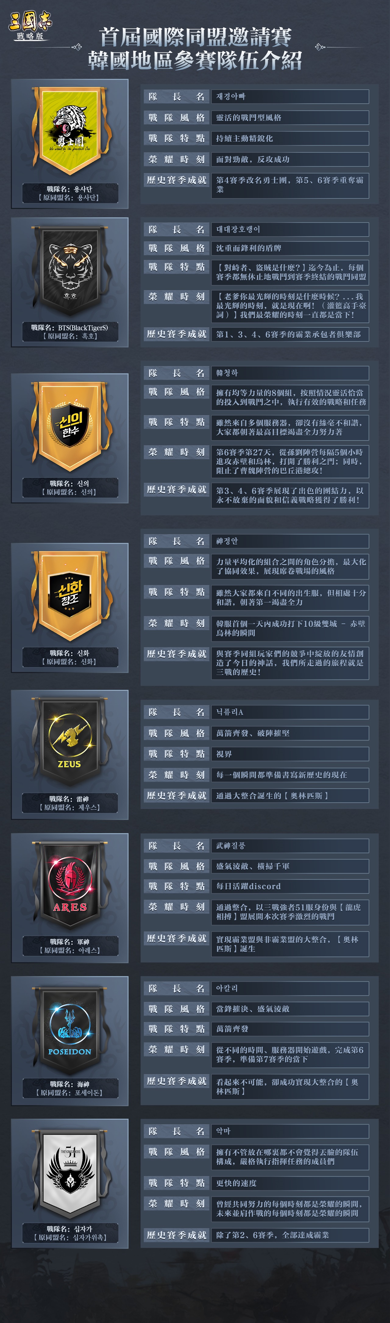 【십자가위촉】團隊的成就非常耀眼,從成軍以來除了第2與6賽季外,其餘的賽季都達成霸業,靠的就是軍隊成員的強大執行力,能夠專注的執行各項軍隊中的指揮任務。【십자가위촉】將會是本次邀請賽中讓人最期待的隊伍之一。
