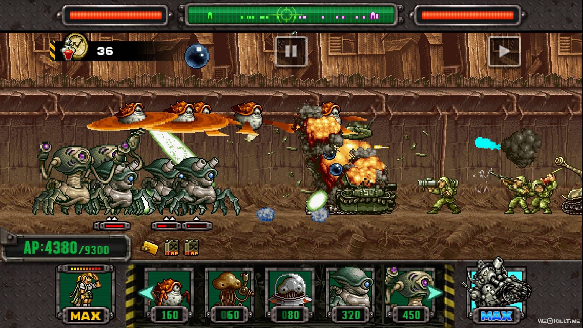 本作是基於人氣 2D 動作射擊遊戲《METAL SLUG》的世界觀所製作的動作塔防遊戲,自 2014 年 5 月 1 日上線至今已突破了 1800 萬次下載。在這次的更新中,追加了以每天 Wi-Fi 對戰中獲得的點數為基準換取報酬獎勵的全新系統,此外還有開放所有單位等級上限、追加新關卡、新單位等內容。本次 Android 版本升級將於今日起實施,iPhone 版本更新將隨後更新。