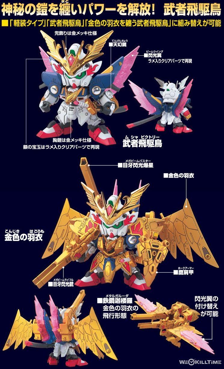 BB戰士《武者飛驅鳥》於《LEGENDBB》復活! BB戰士 NO.397「LEGENDBB」系列模型第11彈,NO.377武者號斗丸的兄長《武者飛驅鳥》。這次模型附屬了呼叫「天來變幻」而來的裝甲「鐵鋼迦樓羅」。按著這步調,看來推出《飛驅鳥大將軍》的日子要來了! 生產商: BANDAI 比例: 無比例 發售日: 2015年1月15日 售價: 1,200 YEN BB 模型 飛驅鳥 用facebook分享給好友 用LINE分享給好友